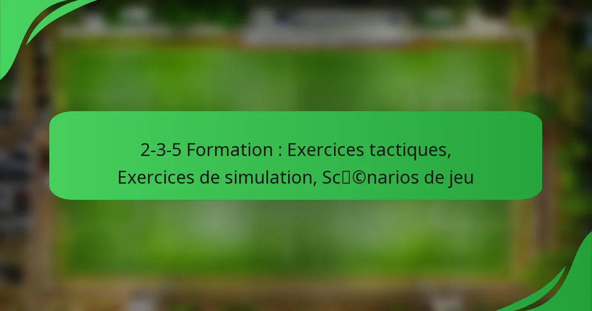 La formation 2-3-5 est un schéma classique de football qui met l’accent sur un style de jeu offensif agressif avec son agencement de deux défenseurs, trois milieux de terrain et cinq attaquants. Pour maximiser son efficacité, les entraîneurs peuvent mettre en œuvre des exercices tactiques et des simulations qui se concentrent sur le positionnement et le mouvement, préparant ainsi les joueurs à des scénarios de match réels. Ces pratiques améliorent non seulement la coordination de l’équipe, mais aident également les joueurs à intérioriser leurs rôles au sein de la formation, garantissant une équipe bien préparée le jour du match.