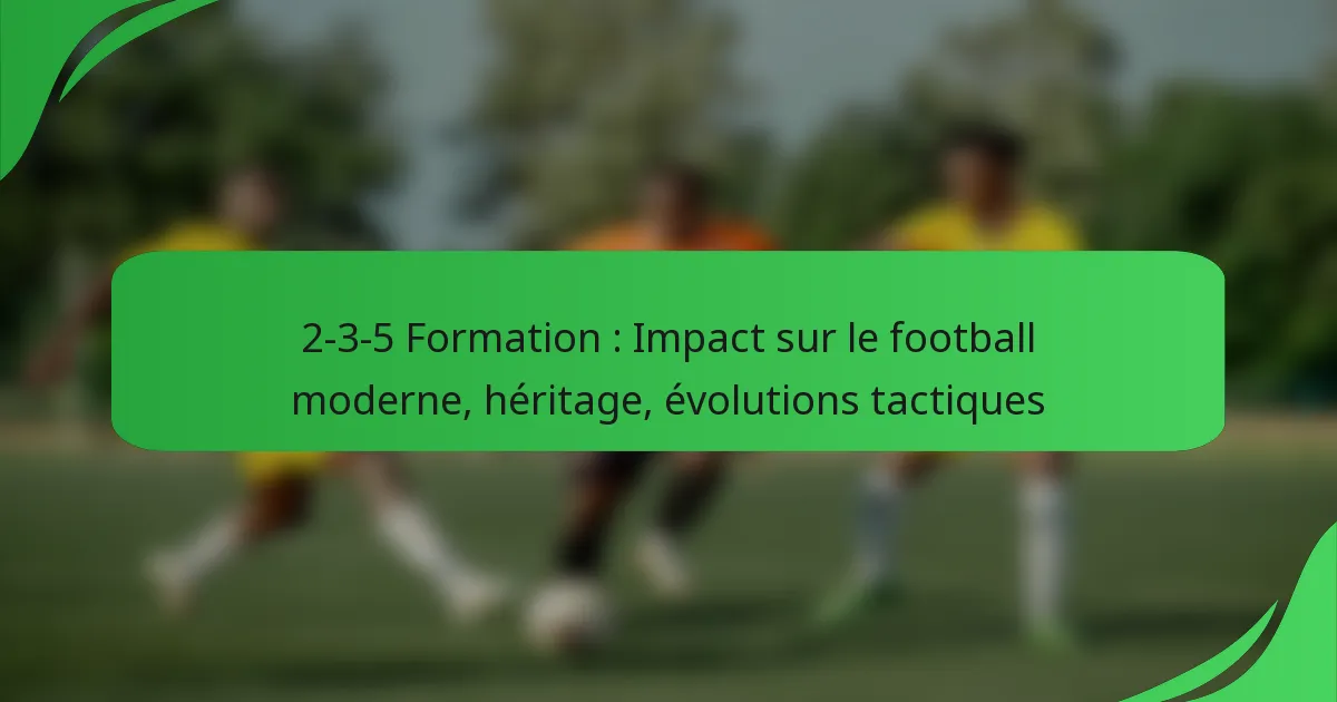 La formation 2-3-5 est un schéma classique de football qui comprend deux défenseurs, trois milieux de terrain et cinq attaquants, mettant l’accent sur le jeu offensif. Son importance historique a façonné les styles d’entraînement et l’éducation tactique, conduisant à un accent sur les stratégies d’attaque et la flexibilité positionnelle. Les entraîneurs utilisant cette formation doivent […]