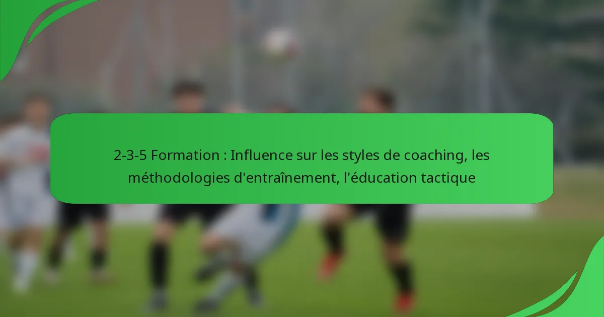 Read More2-3-5 Formation : Influence sur les styles de coaching, les méthodologies d’entraînement, l’éducation tactique