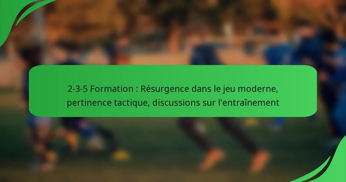 Read More2-3-5 Formation : Résurgence dans le jeu moderne, pertinence tactique, discussions sur l’entraînement