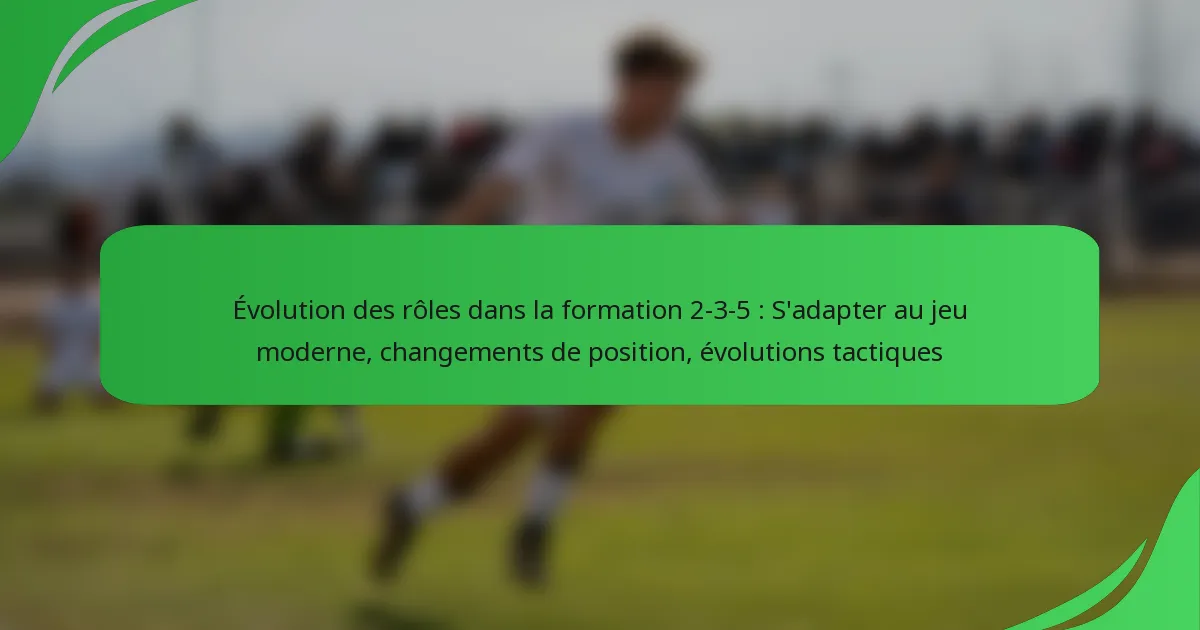 Read MoreÉvolution des rôles dans la formation 2-3-5 : S’adapter au jeu moderne, changements de position, évolutions tactiques