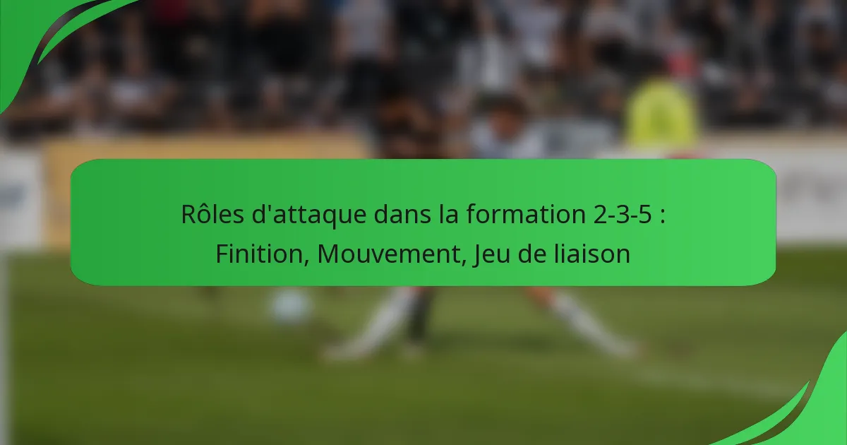 La formation 2-3-5 est une stratégie classique du football qui privilégie le jeu offensif avec ses cinq attaquants. Dans cette configuration, les attaquants sont essentiels pour marquer et créer des occasions, ce qui nécessite qu’ils excellent dans la finition, le mouvement et le jeu de liaison. En maîtrisant ces compétences, les joueurs peuvent améliorer considérablement […]